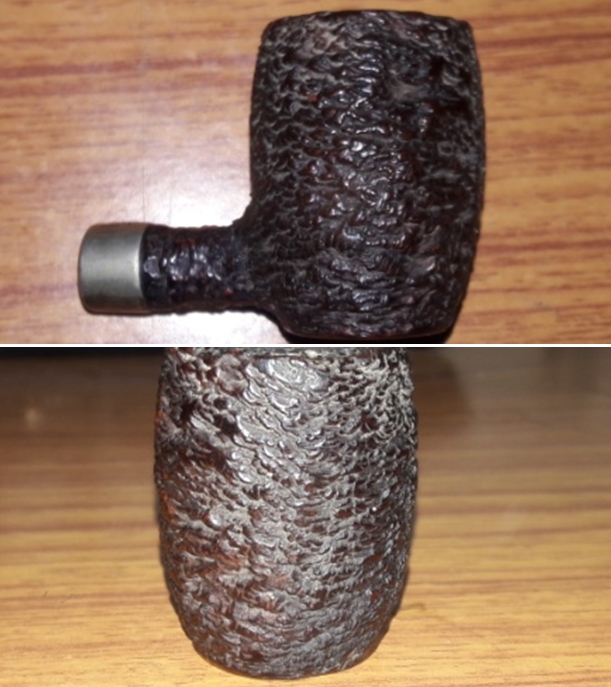 I am excited to finish another of the lot as it moves me one pipe closer to being finished. I put the pipe back together and buffed it with Blue Diamond on the buffing wheel. I gave the bowl and the stem multiple coats of carnauba wax. I hand buffed the pipe with a clean buffing pad to raise the shine. It is fun to see what the polished bowl looks like with the grain popping through on the rim top and the rustication coming to life. Added to that the polished black vulcanite stem with the shining brass pins was beautiful. This mixed smooth and rusticated finish Brigham Exclusive Pot is nice looking and feels great in my hand. It is light and well balanced. Have a look at it with the photos below. This is the smallest of the Brigham pipes that I have worked on in this collection. The dimensions are Length: 5 inches, Height: 1 5/8 inches, Outside diameter of the bowl: 1 ¼ inches, Chamber diameter: ¾ of an inch. This is the 16th of the 19 pipes sent to me from Eastern Canada for restoration. Once again I am looking forward to what the pipeman who sent it thinks of this restoration. Lots more to do in this lot! Thanks to each of you who are reading this blog. Remember we are not pipe owners; we are pipemen and women who hold our pipes in trust until they pass on into the trust of the next pipeman or woman.