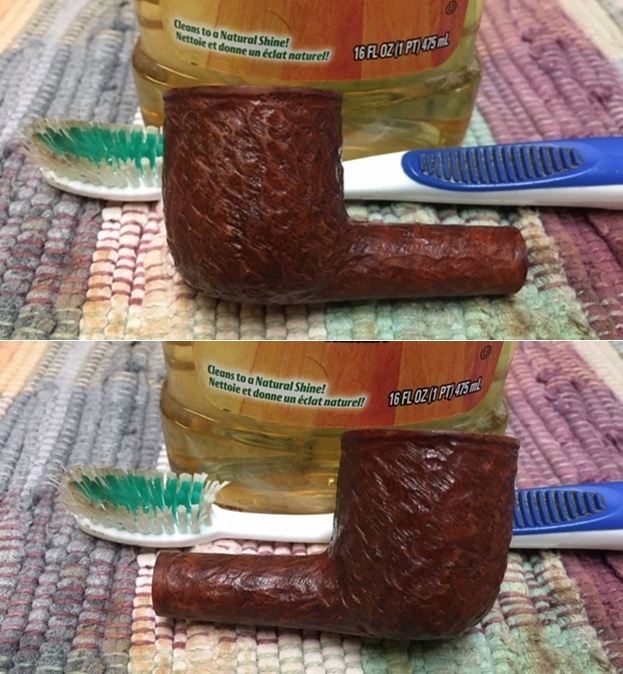 I set the bowl aside and turned my attention to the stem. I rubbed the stem down with Soft Scrub on with a cotton pad and it removed the oxidation and the calcification build up. It looked a lot better.