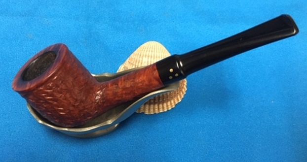 When I unwrapped it the pipe it was a nice looking rusticated pot that was lighter in colour than the other rusticated Brighams in the collection. It was stamped on the smooth underside of the shank. The stamping is faint but part of it was readable. The shape number 314 is on the heel of the pipe and identifies the shape. It is followed by the Can. Pat. 372982 and then the Brigham stamp in script. It had a rusticated bowl and shank with a smooth rim top. The rim top had a lava overflow from the medium cake in the bowl. The bowl was in decent condition, slightly out of round on the inner edge. There was some darkening around the top and inner edges of the bowl. It was a dirty pipe but the finish appeared to be in okay condition under the grime. The 3 Dot saddle stem was oxidized and had tooth marks and chatter near the button on both sides. There was also some calcification for about an inch up the stem.