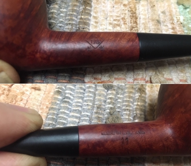 He took a photo of the stamping on the sides of the. You can see that the stamping is very clear. On the left side it reads BBB in a diamond with a star on each side of the base. On the right side it reads Made in England over the shape number 11.