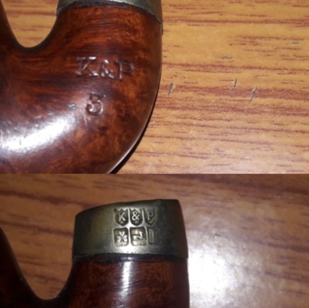 In the following example, the name is stamped very small on the top of the turned part of a Cumberland stem. The side has a unique symbol ” the hammer (Mjolnir) of Thor, the god of thunder “. There is also limited stamping on the wood: HANDARBEJDE, DANMARK.