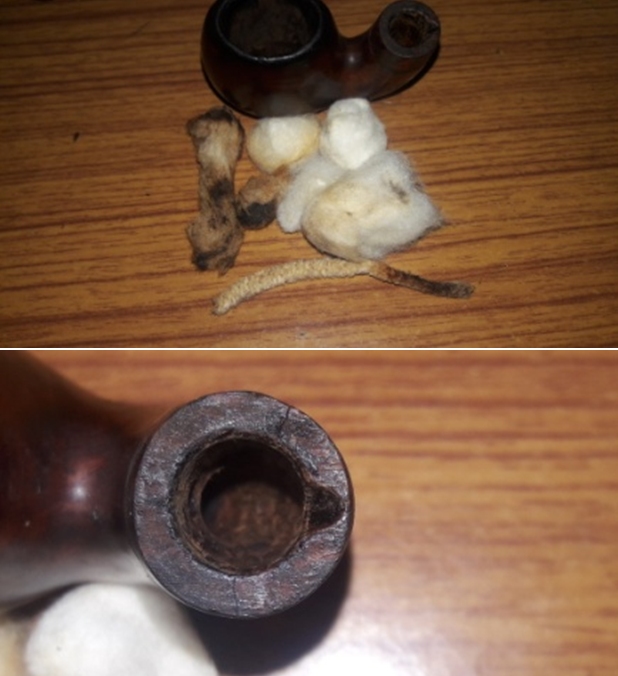 Using pipe cleaners and cotton buds wetted with isopropyl 95%, I continue cleaning the internals. A small dental spoon also works well to scrape old tars and oils off the mortise walls. In time, the buds and pipe cleaners begin to emerge lighter and I call this phase of the internal cleaning finished.