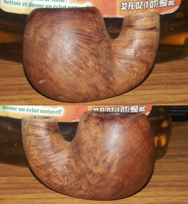 Mark Hoover’s Before and After Restoration Balm works wonders. After putting a small amount on my fingers, I work the Balm into the briar surface. The Balm brings out the more subtle tones of the briar hue. After applying the Balm and letting it set for about 10 minutes, I use a microfiber cloth to wipe off the excess Balm and then buff up the briar surface.