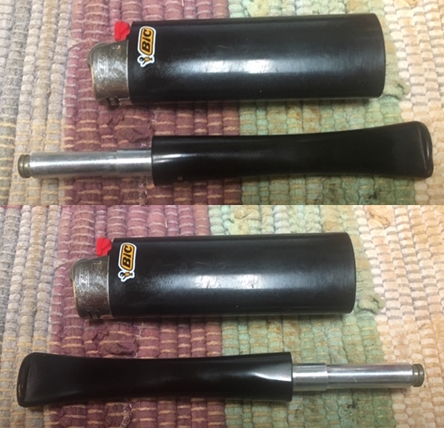 With that done the bowl was finished other than the final buffing. I set it aside and turned my attention to the stem. I painted the stem surface with the flame of a Bic lighter to lift the tooth marks from the surface.