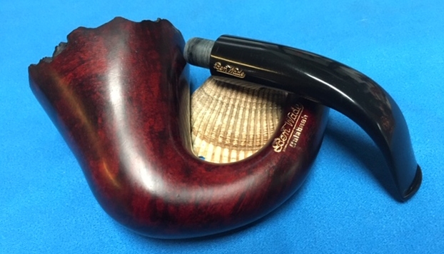 I took the stem off the shank and took two photos to give a clear idea of the gentle curves of the pipe and the look of the rugged plateau rim on the delicate bowl. It really is a beauty! The tenon is drilled for a 6mm filter but could easily be smoked without one or with an adapter.