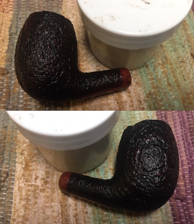 This one was also a Kapruff and it had a splash of grain on one side.  The pipe was in very good shape.  The stem had light oxidation, the P stamp was deeply impressed and it was nearly bite free.  The briar was unblemised, including the bowl top and nomenclature.  There was only a slight hint of tobacco in the chamber and it looked well cared for.