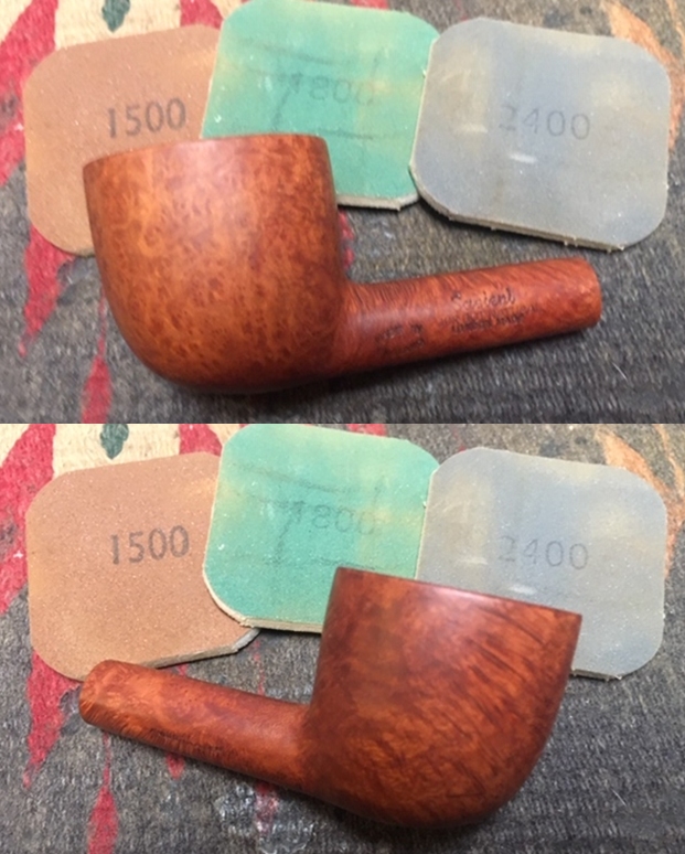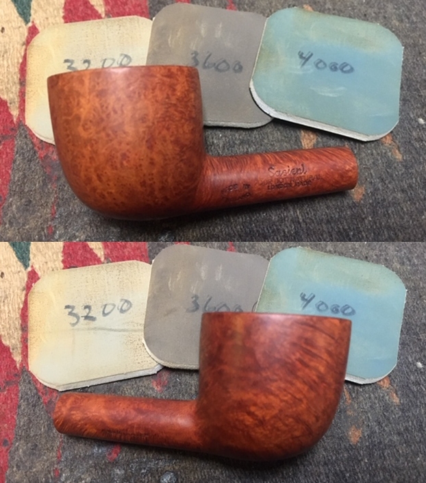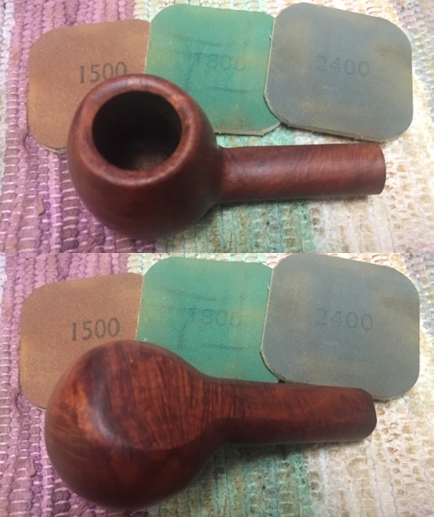 I polished the briar with micromesh sanding pads. I wet sanded it with 1500-12000 grit pads and wiped the bowl down with a damp cloth after each pad.