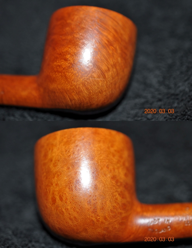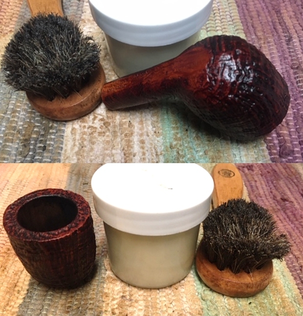 I worked some Before & After Restoration Balm into the briar with my fingertips. I let the balm sit on the briar for 10 minutes the buffed it off with a soft cloth. The product is a great addition to the restoration work. It enlivens, enriches and protects the briar while giving it a deep glow. I appreciate Mark Hoover’s work in developing this product.