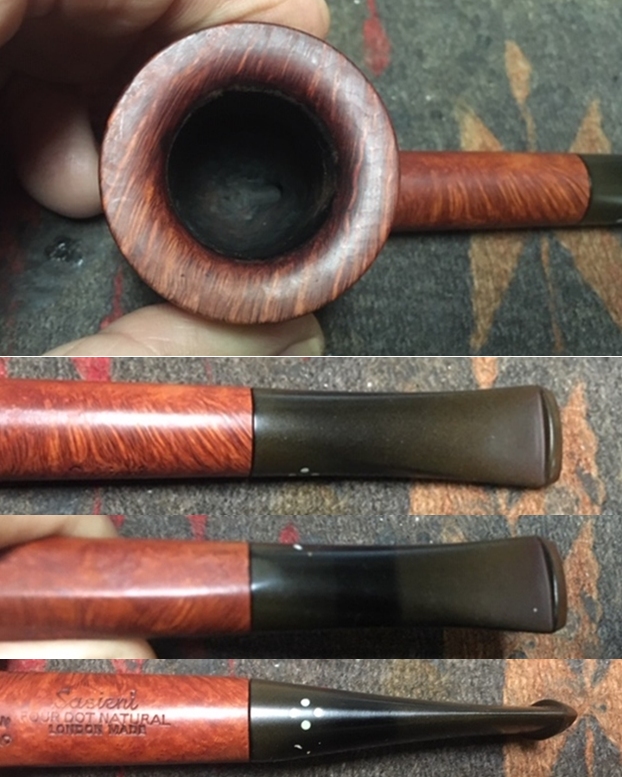 This is a nice Savinelli pipe and it is fun to work on a shape I have not seen before. When I received it Jeff had once again done his usual thorough job cleaning the pipe. He reamed it with a PipNet pipe reamer and got rid of the cake. He cleaned up the reaming with a Savinelli Fitsall Pipe Knife so that we could see the walls of the bowl and assess for damage. He cleaned the internals of the shank and stem with alcohol, pipe cleaners and alcohol. He scrubbed the exterior with undiluted Murphy’s Oil Soap and a tooth brush. He rinsed the pipe under warm water. He dried it off with a cloth and then let it air dry. The stem was scrubbed with Soft Scrub and soaked in Before & After Deoxidizer. It came out looking very good. The finish on the bowl and the rim top cleaned up beyond my expectations. I took pictures of the pipe to show how it looked when I unpacked it.