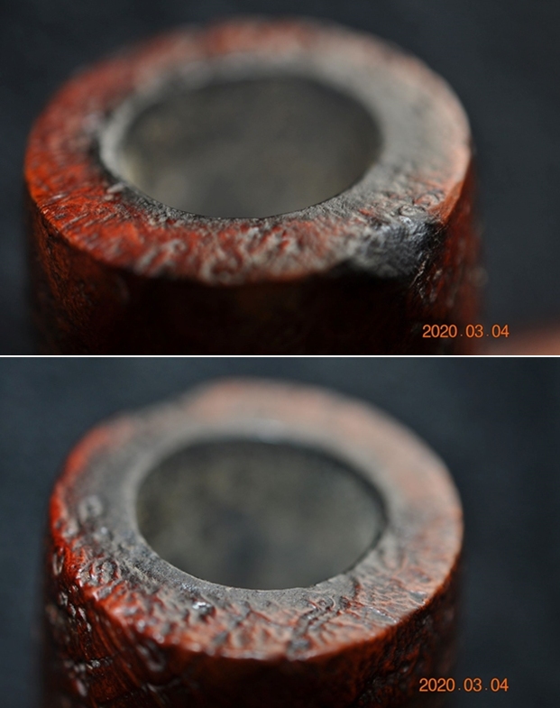 I took some photos of the rim top and stem to show the condition of them both when it arrived. It looked good. There is some darkening and damage to the inner edge of the bowl. The stem had some deep tooth marks ahead of the button and on the button surface on both sides.