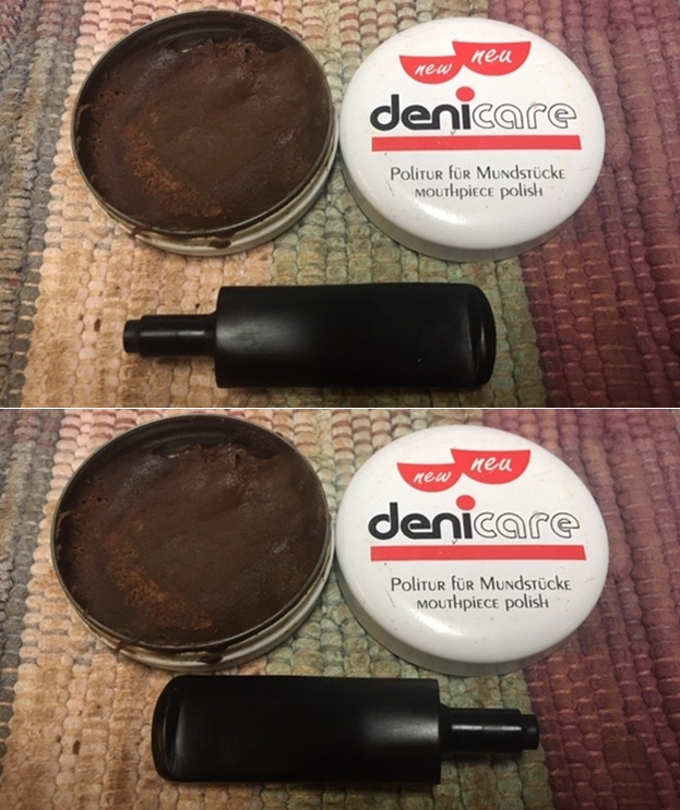 I used some Denicare Mouthpiece Polish that I have in my kit to start polishing out some of the scratches and remaining oxidation on the stem. I rubbed it in with a cotton pad and my finger tip and buffed it off with a cotton pad.