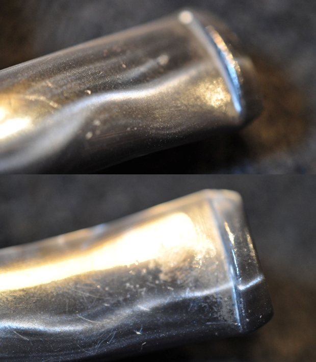 I sanded out the tooth chatter with 220 grit sandpaper and started to polish it with a folded piece of 400 wet dry sandpaper. Once it was finished it began to shine.