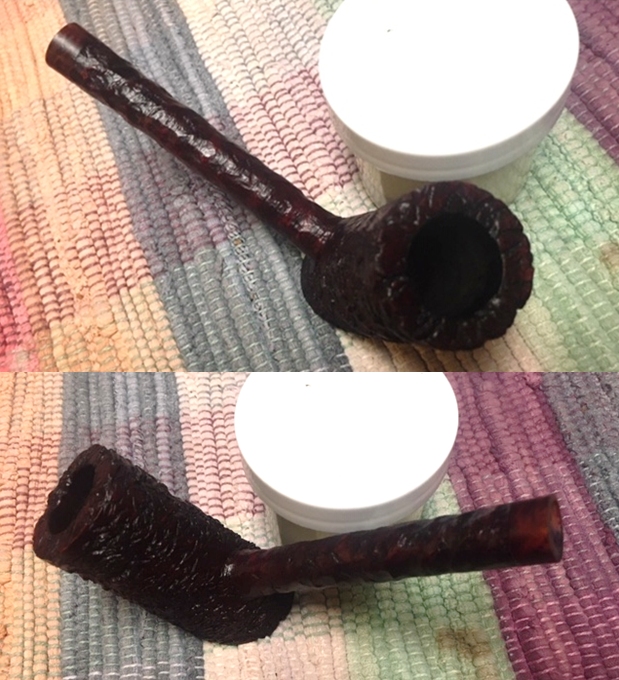 Based upon the information of this thread, the Natural Burl Apple before me dates from 1957 to 1962, when they were featured in Kaywoodie catalogs. I looked for a catalog during this period online, but unfortunately, I was unable to find one. The rusticated or carved surface theoretically provides a cooler feeling bowl. This pipe fits Sam’s low budget approach to his pipes. When the Natural Burl Apple first hit the market, it was in a working man’s modest budget range, $4! I’m hopeful that after I’ve completed working on Paw’s vintage Kaywoodie it will look like a million bucks!