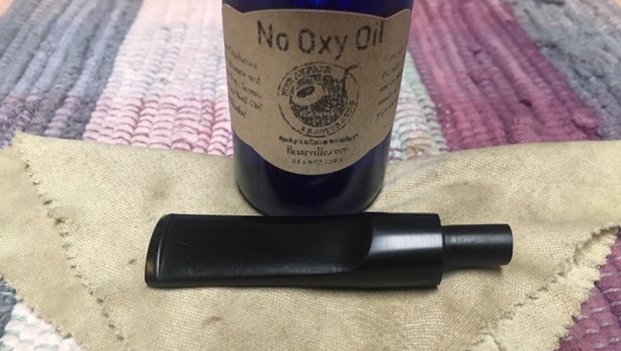 After cleaning the stem, paraffin oil is applied to help condition the vulcanite. I put the stem aside to absorb the oil. The stem looks great compared to where it started. It’s cleaning up nicely.