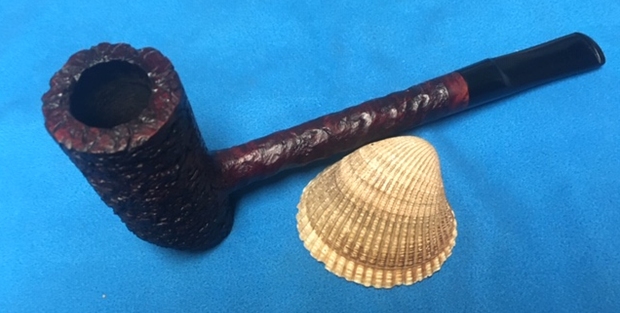 Natural Burls are in the catalogs from 1957 to 1962. They were $4.00 when they first came out and $5.00 by the time they were discontinued. They were basically a stained version of the Coral White Briar, which also debuted in 1957. The overall rough texture was described in the catalogs as having a rough texture like the outside of the burl. The rough texture in theory would create more surface area for a cooler feeling bowl. Carving of this type was done on bowls of less desirable grain and with excessive surface imperfections. On the lower side of the quality scale, Natural Burls would have had the white cloverleaf. There may have been the occasional higher grade pipe that was downgraded during production and hence would have the round logo, but I think you’ll mostly see them with the white logos.