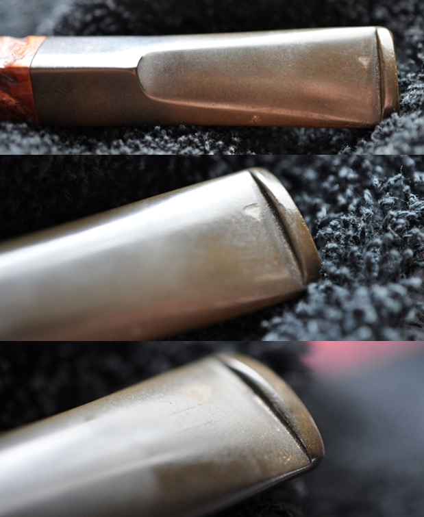 To show how clean the rim top and stem really were I took a close-up photo of the rim and stem. The bowl was clean and cake free. The rim top is very clean with no residual lava in the sandblast finish. The inner edges of the bowl look good. The vulcanite stem cleaned up nicely. The surface had some light oxidation and tooth marks but the button edge looked really good.
