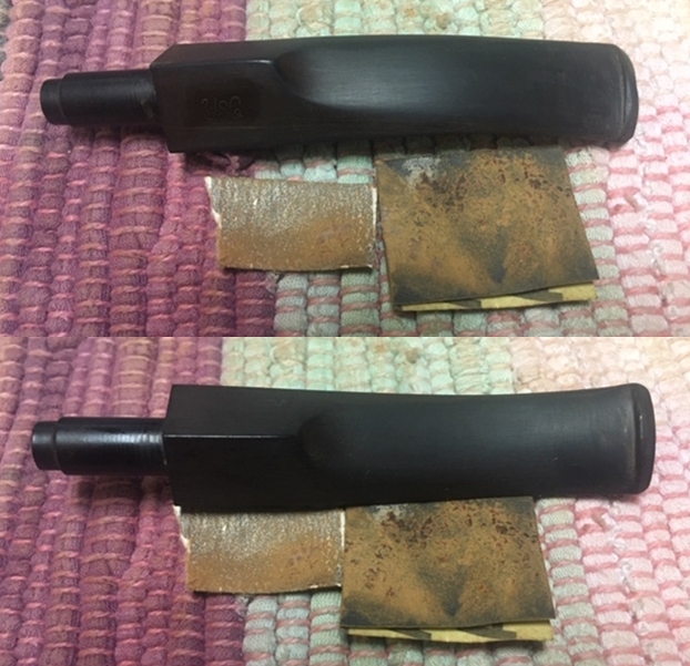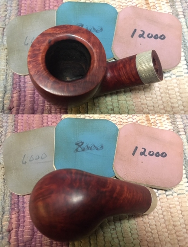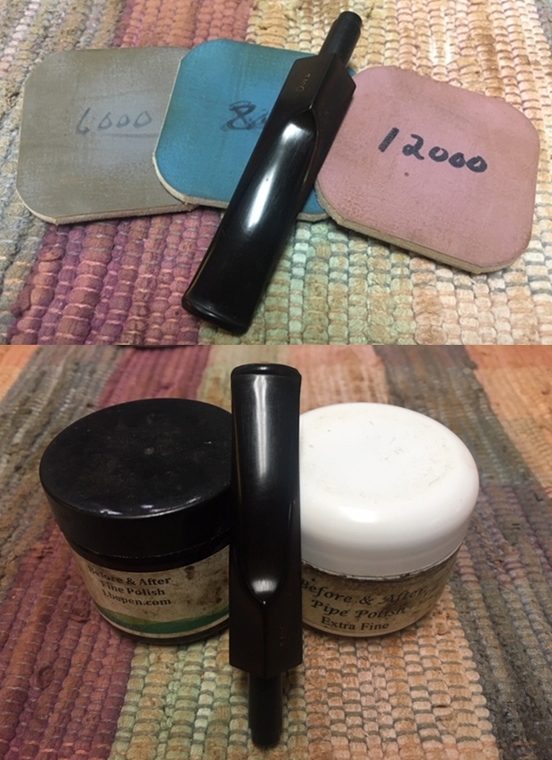 I polished the stem with micromesh sanding pads – dry sanding with 1500-12000 grit sanding pads. I wiped the stem down after each sanding pad with a cloth containing some Obsidian Oil. I finished polishing it with Before & After Pipe Stem Polish – both Fine and Extra Fine and buffed it off with a cotton cloth.