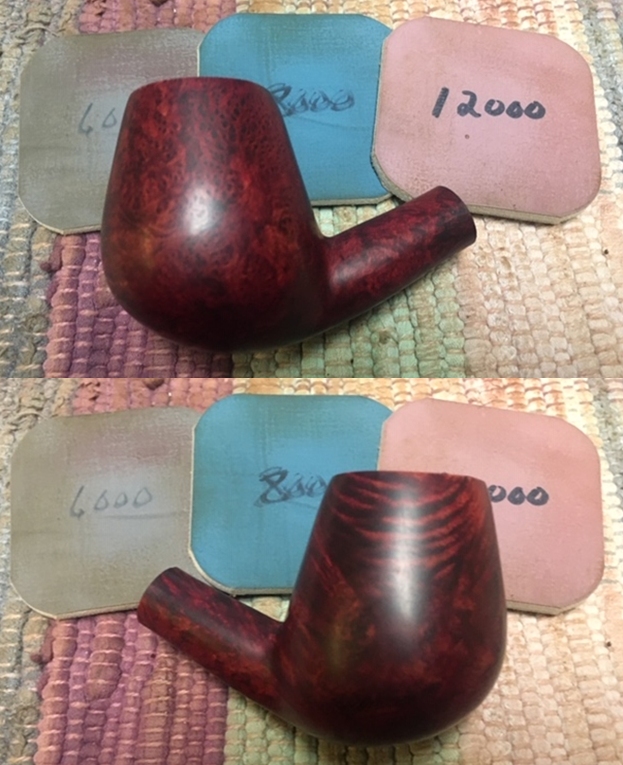I polished the bowl and rim with micromesh sanding pads – dry sanding it with 1500-12000 grit sanding pads. I wiped it down with a damp cloth to remove the dust left behind from sanding.