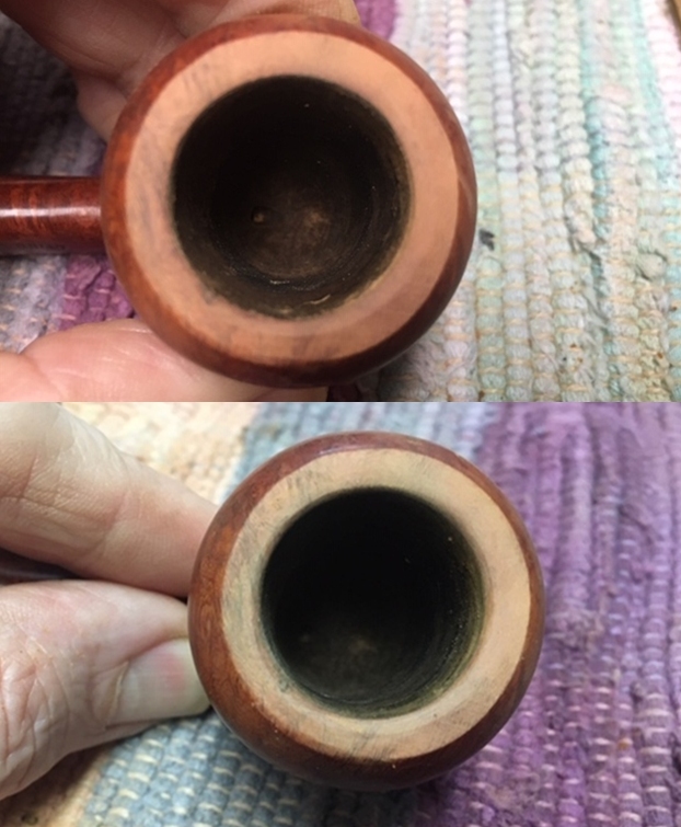 I set the bowl aside and turned to deal with the stem. I “painted” the surface of the stem with the flame of a Bic lighter to lift the tooth marks. I was able to lift them a lot.