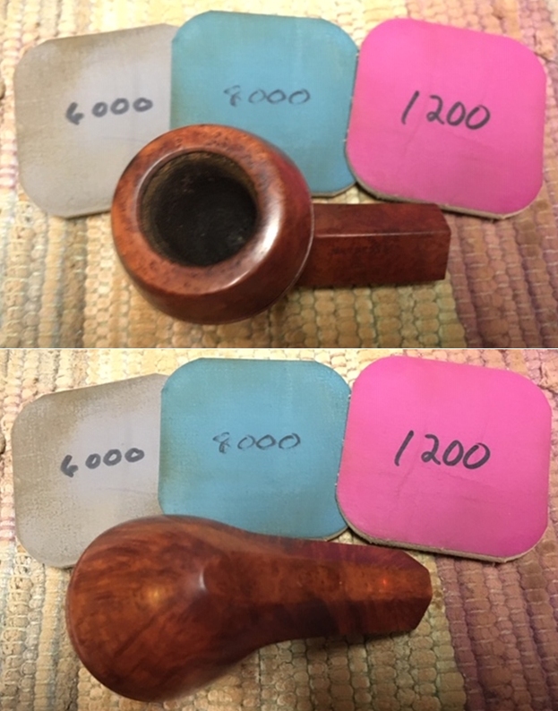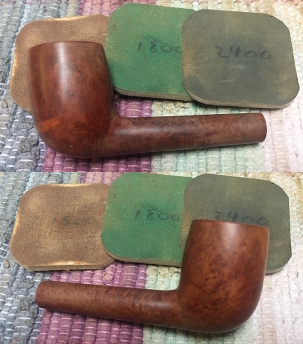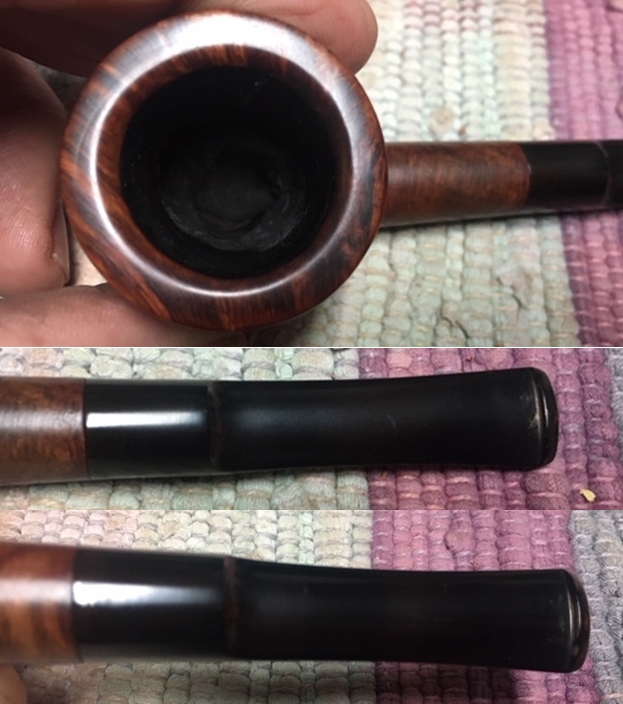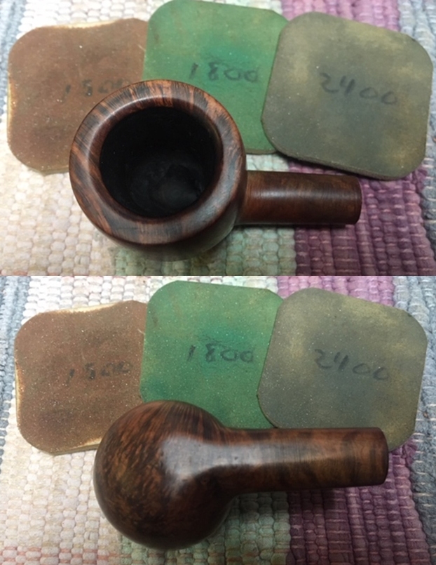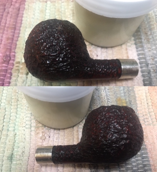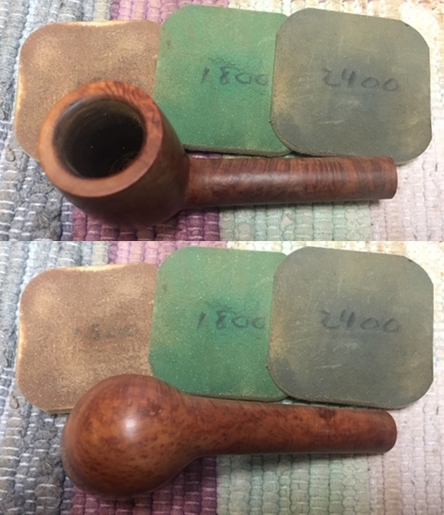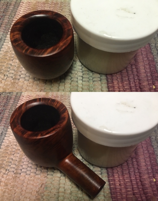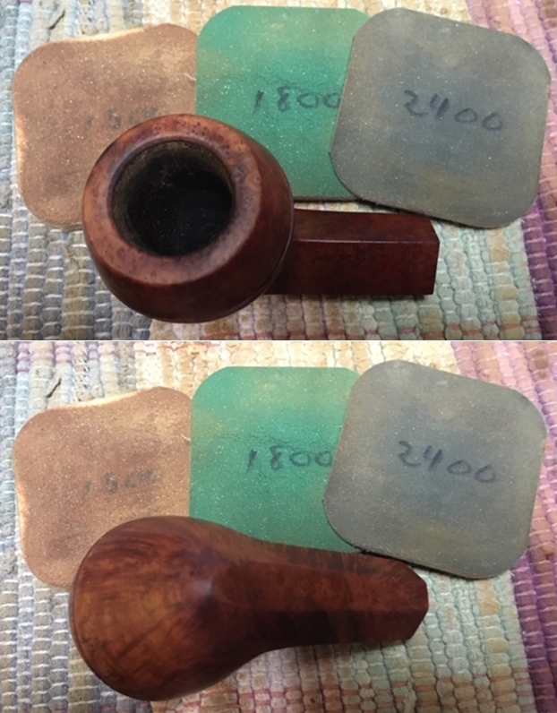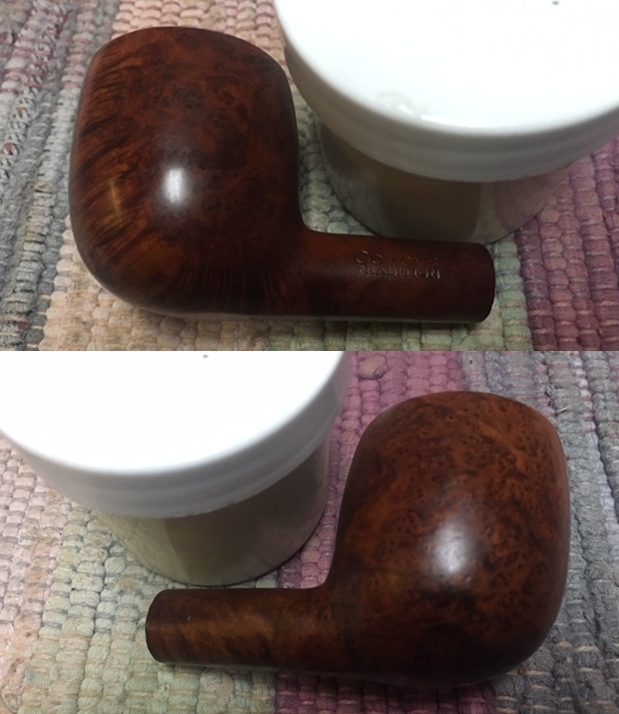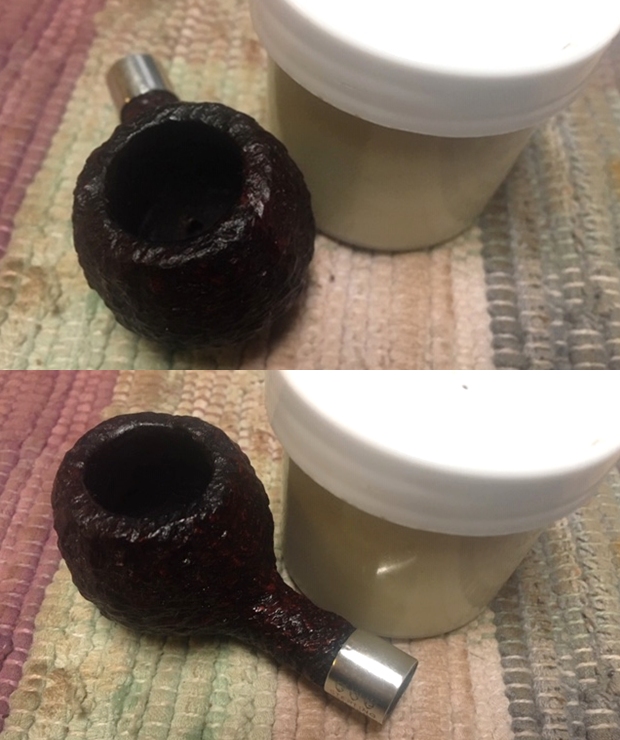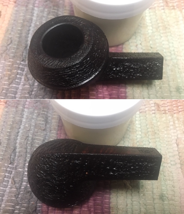 I wiped off the finish on the bowl with alcohol to remove the remnants of finish on the bowl sides and shank. It really cleaned off a lot of the dirty finish.