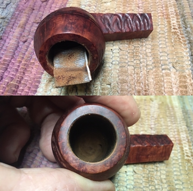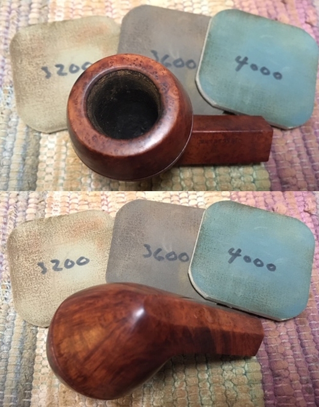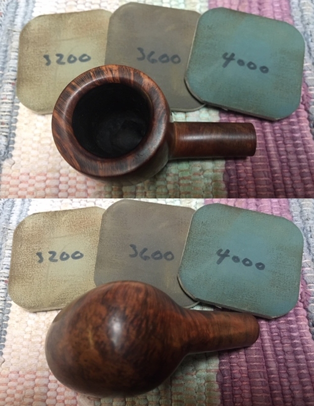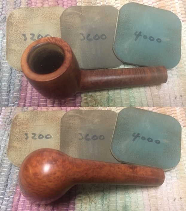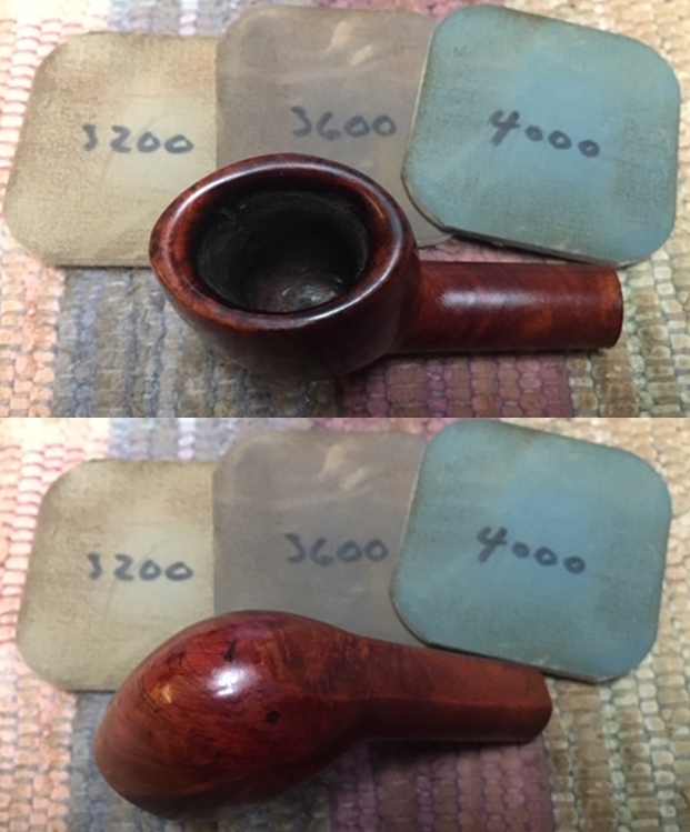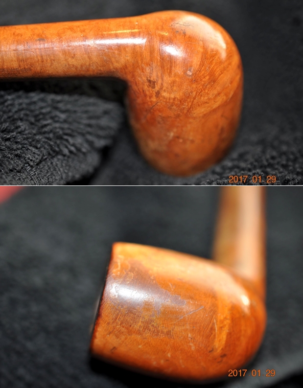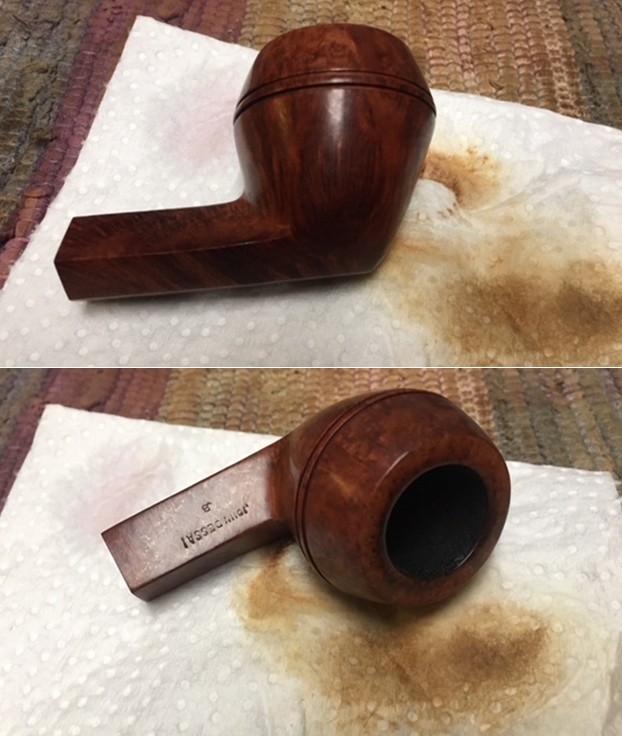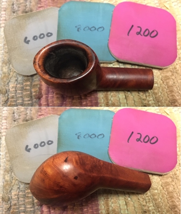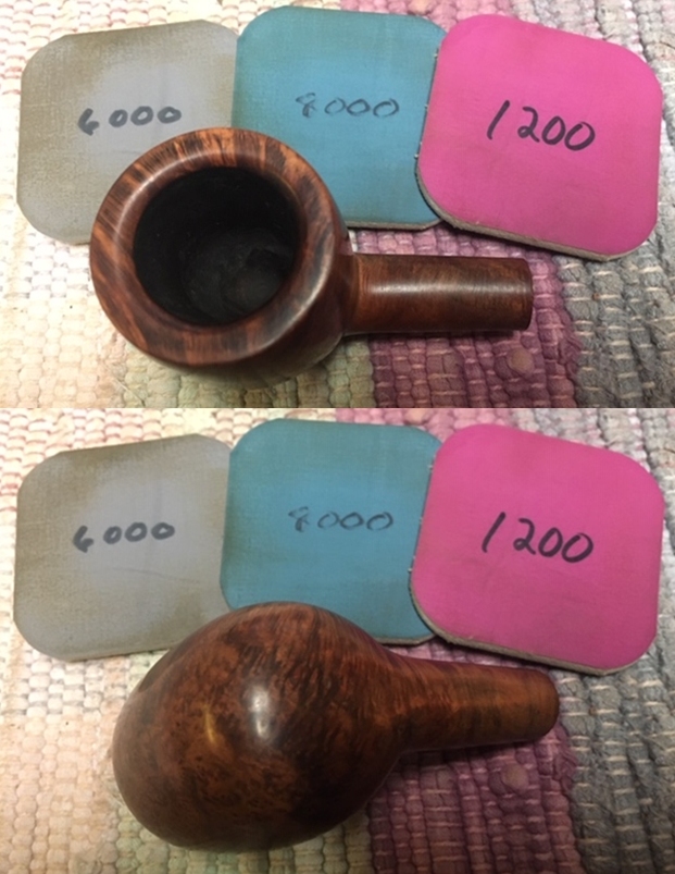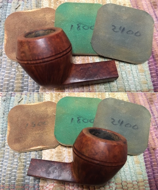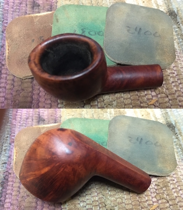 I wiped off the finish on the bowl with alcohol to remove the remnants of finish on the bowl sides and shank. It really cleaned off a lot of the dirty finish.