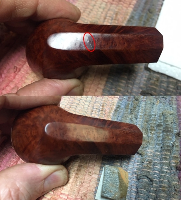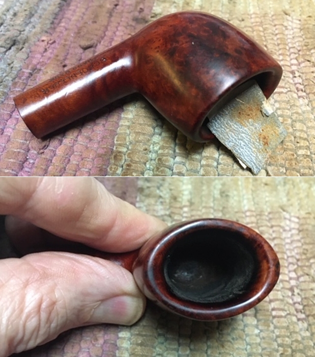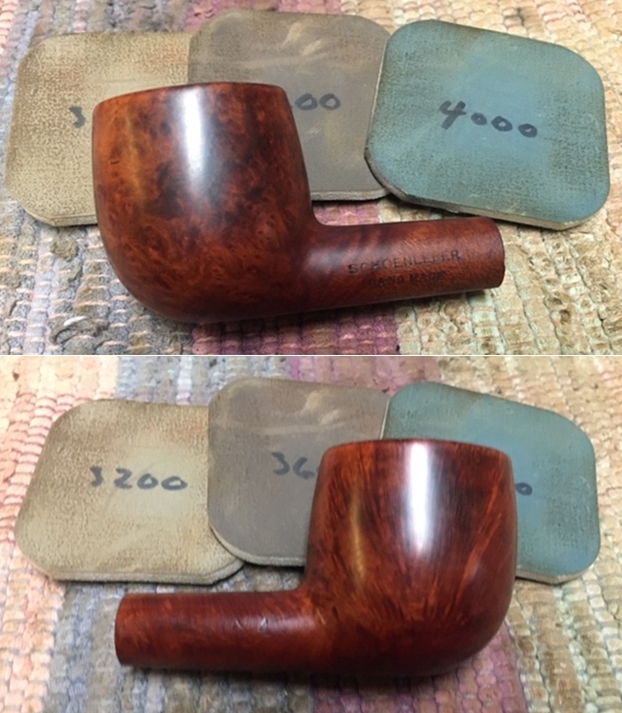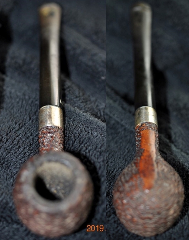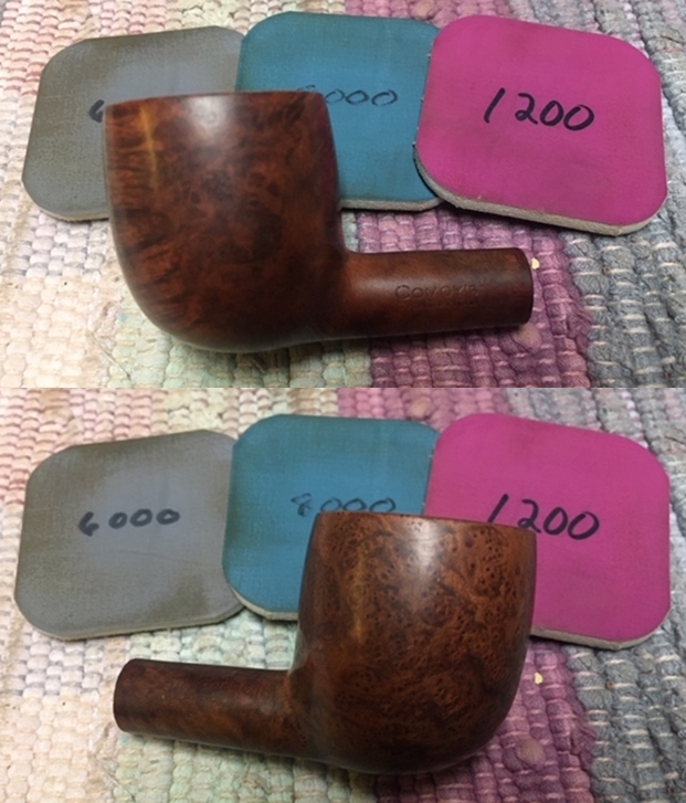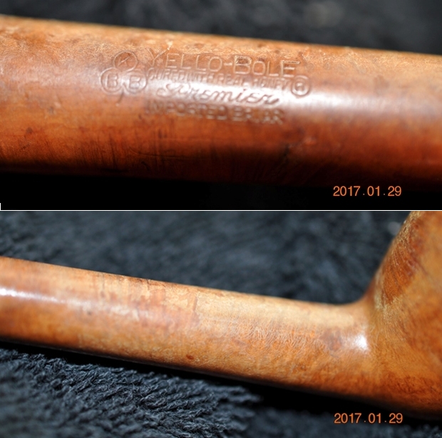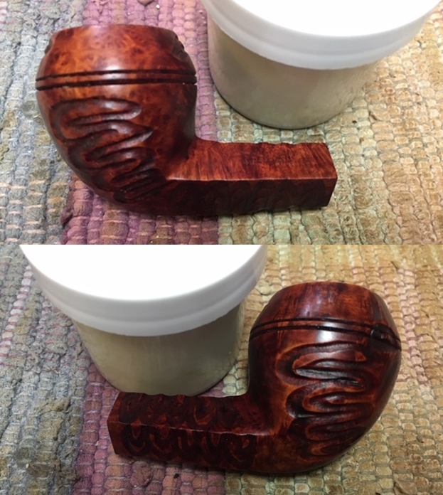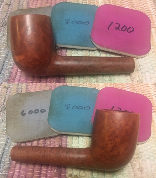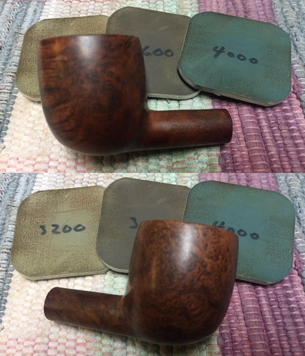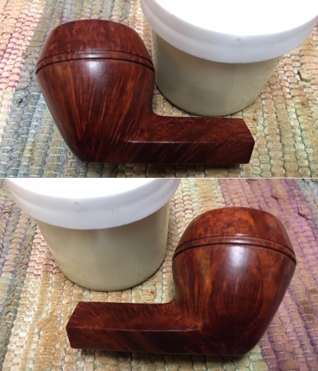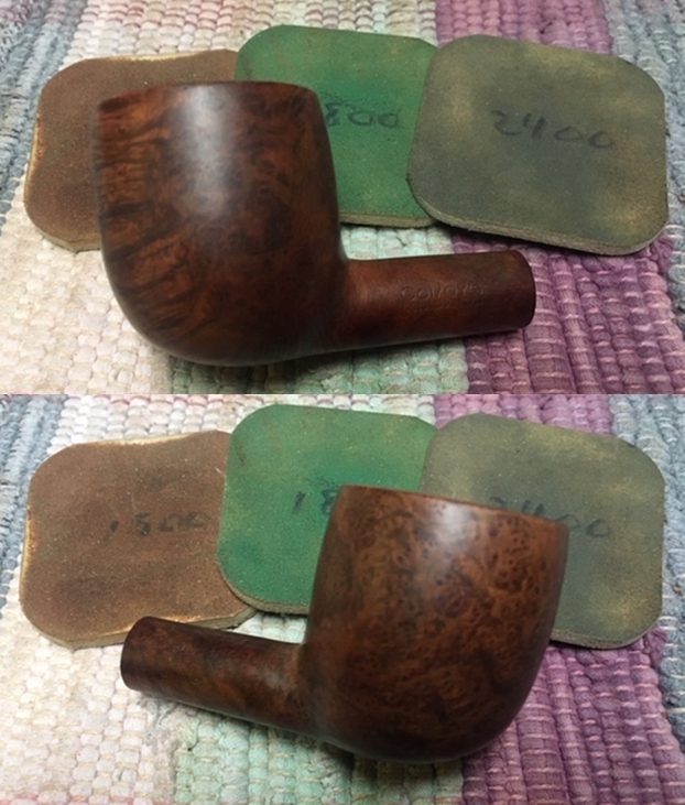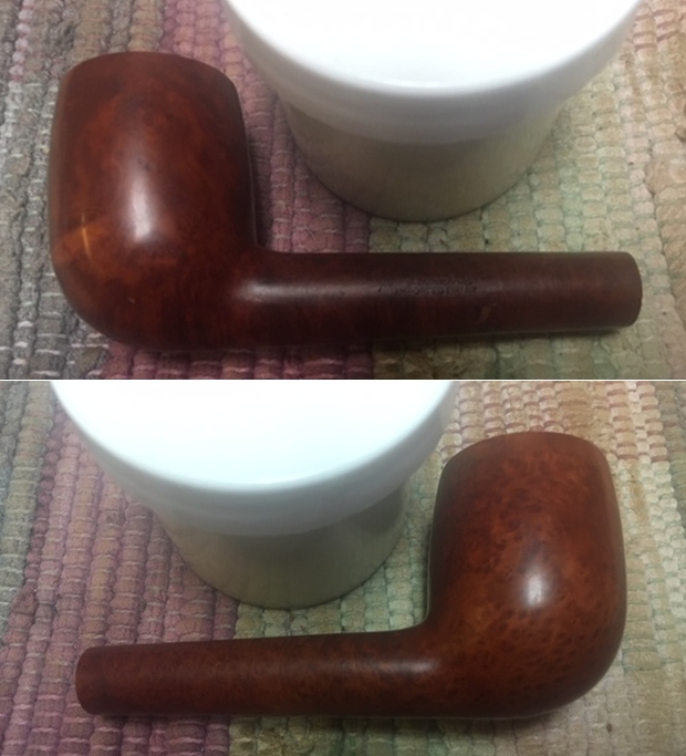 I wiped off the finish on the bowl with alcohol to remove the remnants of finish on the bowl sides and shank. It really cleaned off a lot of the dirty finish.