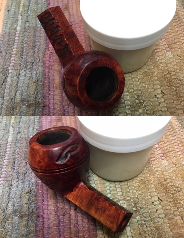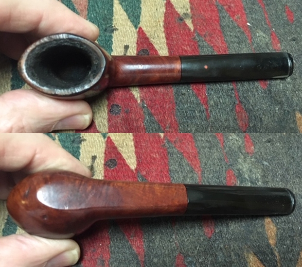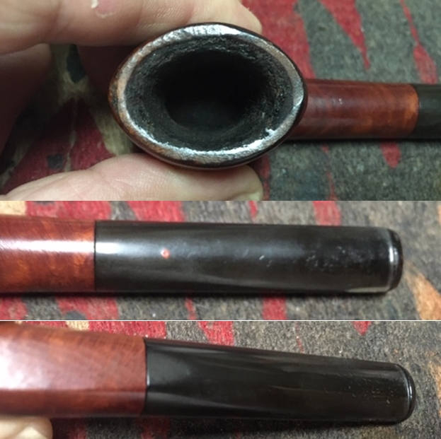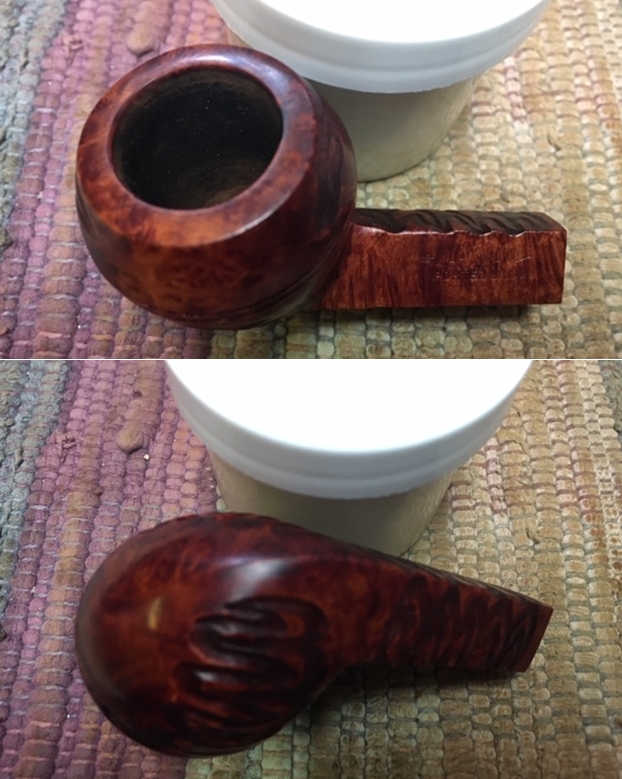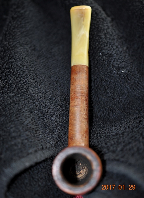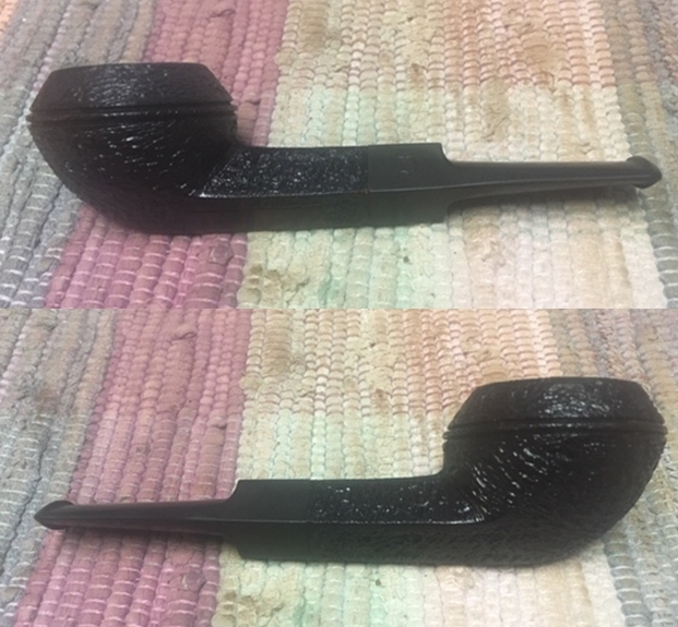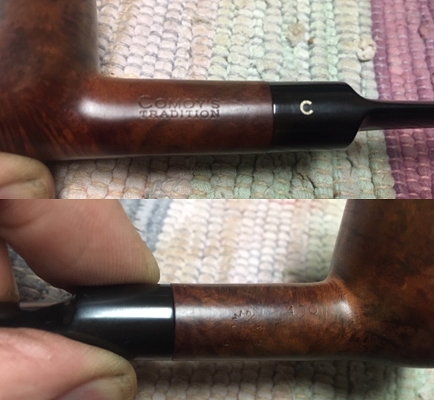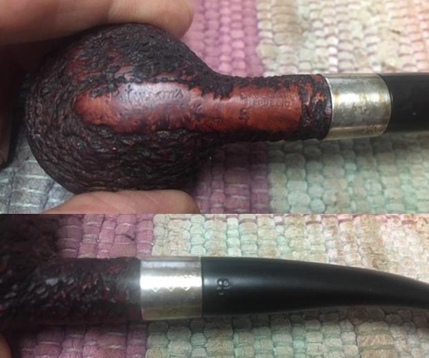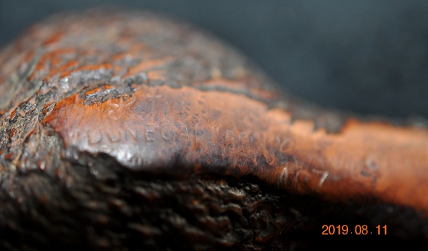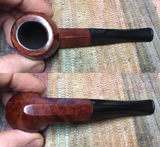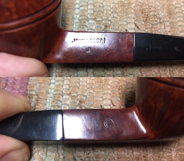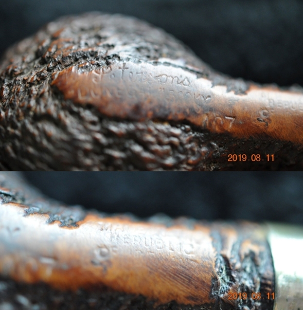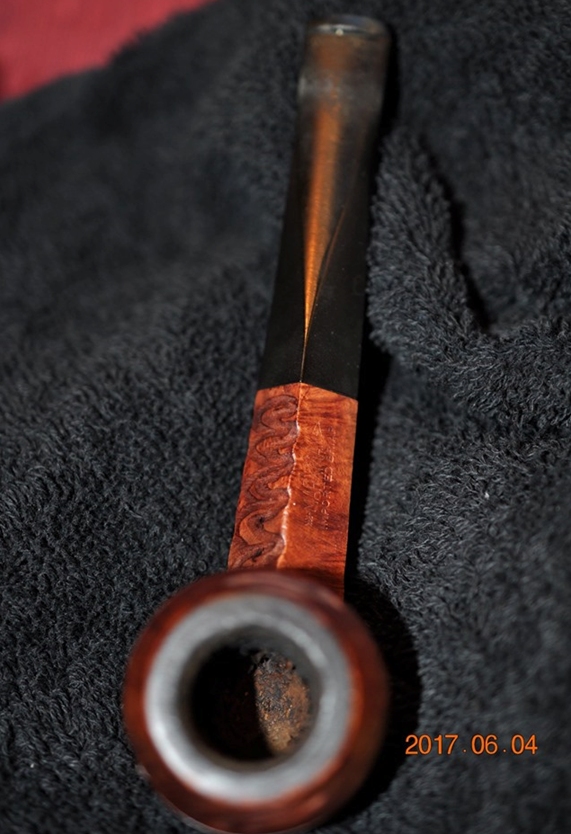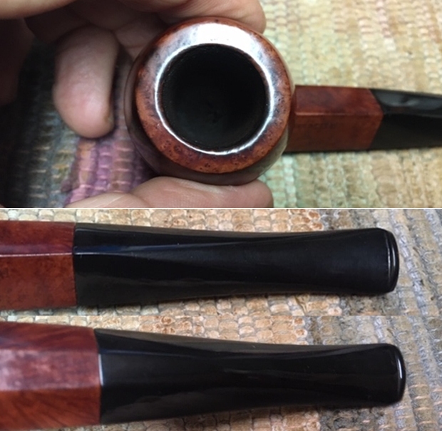 I took a photo of the stamping on the left side of the shank. The stamping is very readable and it reads as noted above. The right side of the shank is smooth and the shape number is near the bowl shank junction (no photo). I took a photo of the Double Bore stem.