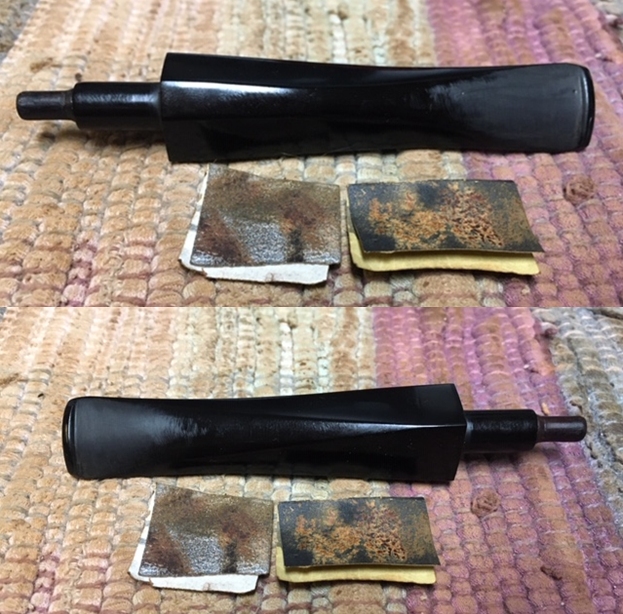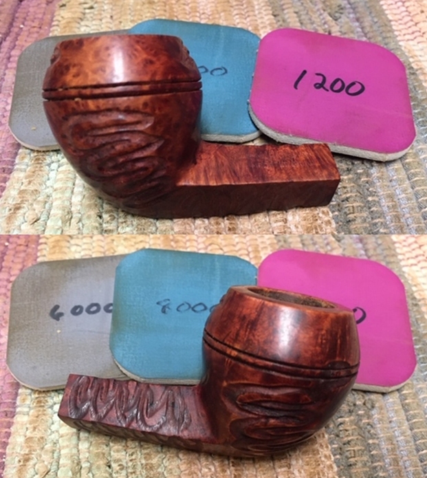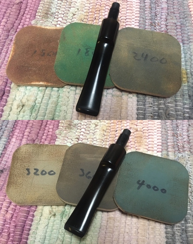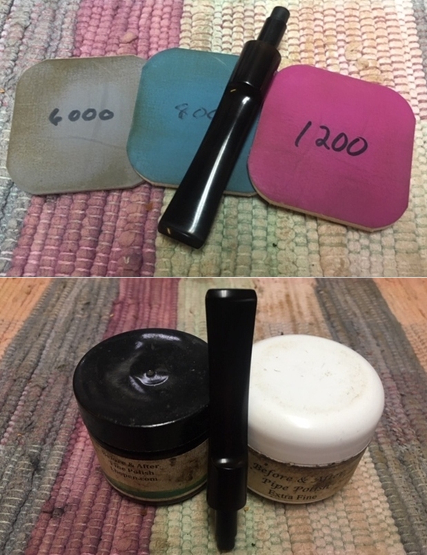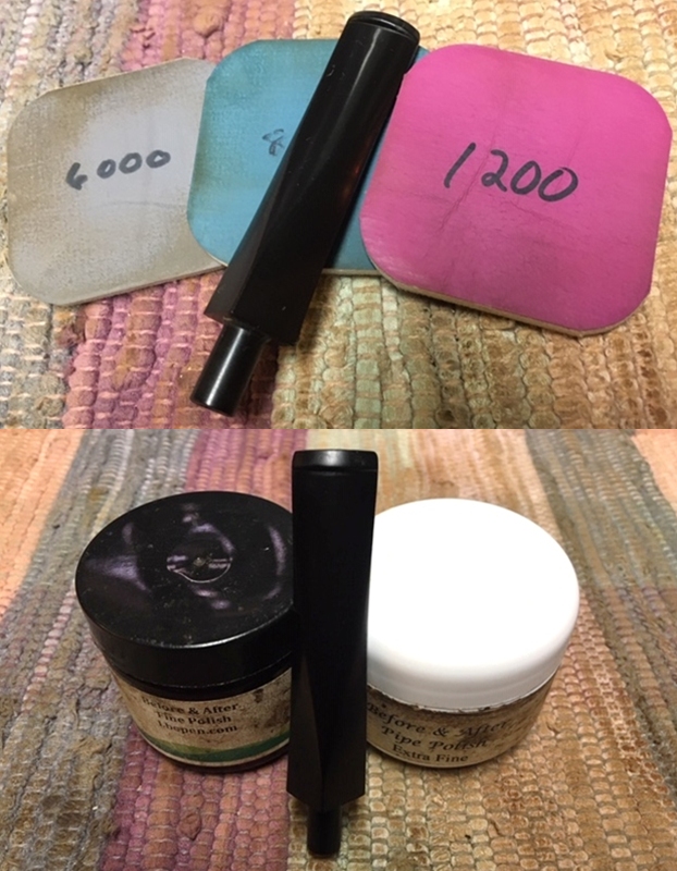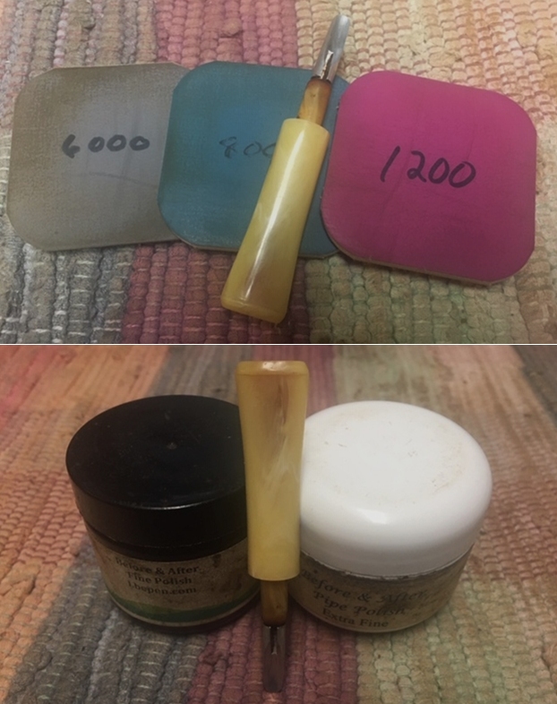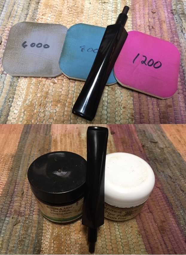 I polished the stem with micromesh sanding pads – 1500-12000 grit pads. I wiped it down with Obsidian Oil after each sanding pad. I used Before & After Pipe Polish – both Fine and Extra Fine to further polish the stem.