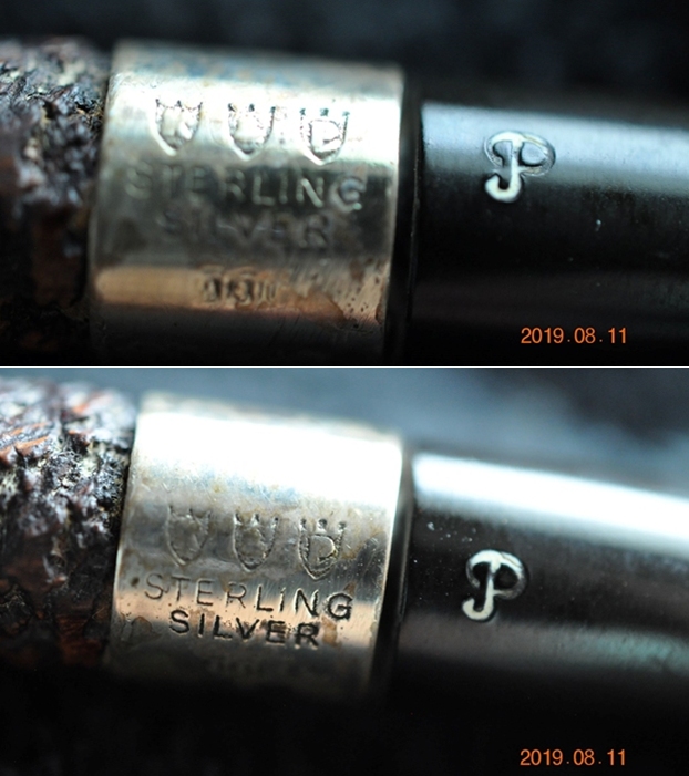 He took a photo of the stamping on the left side of the shank. You can see that it is clear and readable. On the right side it is stamped with the shape number W36. The top of the saddle stem has a brass O inset in the vulcanite.