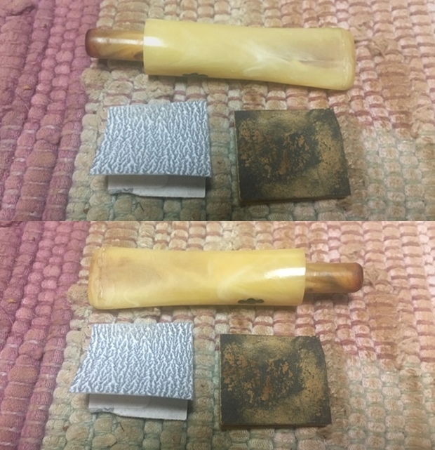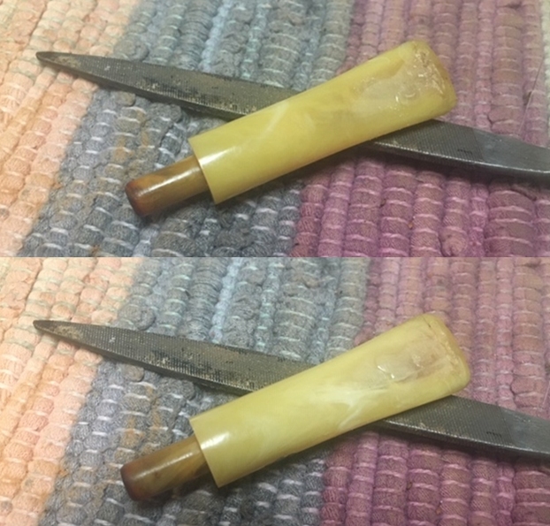 I set the bowl aside and turned my attention to the vulcanite stem. I sanded it with 220 grit sandpaper to remove the oxidation and tooth chatter on both sides of the stem. I started the polishing of the surface with 400 grit wet dry sandpaper.