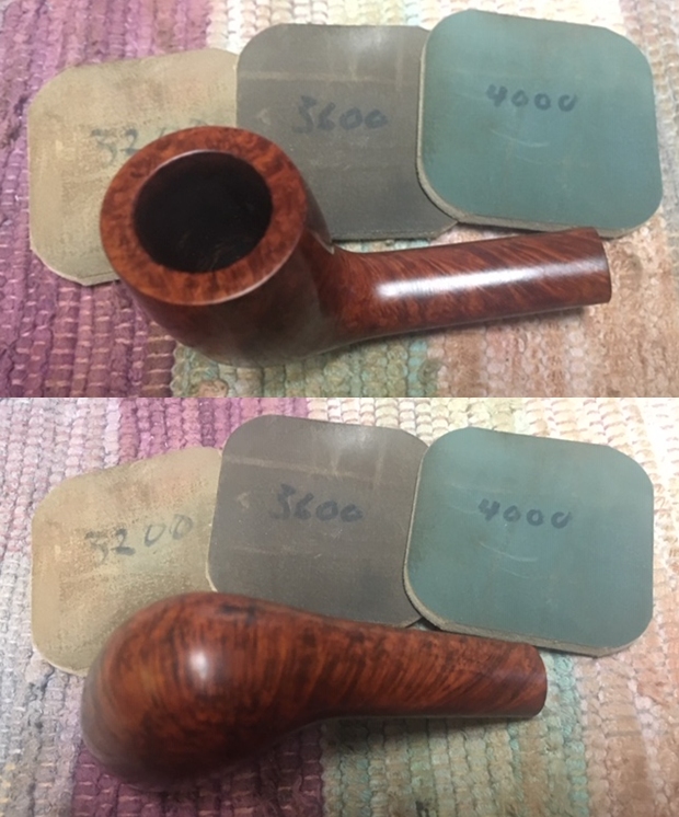 With that the pipe is complete. I buffed it on the buffing wheel with Blue Diamond Polish and gave the entire pipe several coats of carnauba wax on the wheel. I buffed it with a clean buffing wheel and then hand buffed it with a microfiber cloth to deepen the shine. The pipe is now ready to go back to the pipe man who dropped it off Friday afternoon. I look forward to hearing what he thinks of his repaired pipe when he picks it up. Thanks for walking with me through this restoration. Cheers.