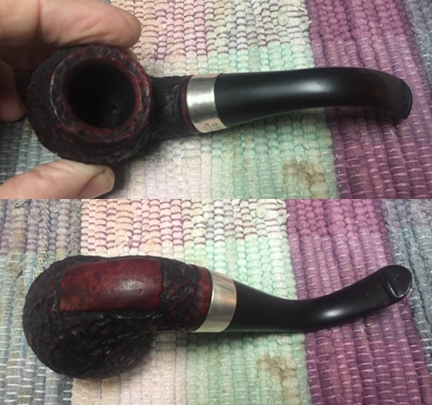 Armed with that information I turned to work on the pipe itself. Jeff had done a great job cleaning up the pipe as usual. He reamed the pipe with a PipNet reamer and cut back the cake back to the bare briar. He cleaned up the walls with a Savinelli Fitsall Pipe Knife. He scrubbed the interior of the bowl and shank with pipe cleaners, cotton swabs and alcohol to remove the tars and oils. He scrubbed the exterior of the pipe with Murphy’s Oil Soap and a tooth brush to remove the grime from the finish. He scrubbed the inside of the stem with alcohol and pipe cleaners. He cleaned the oxidized silver with Soft Scrub and buffed it off with a soft pad. He scrubbed the exterior with Soft Scrub and then soaked it in Before & After Deoxidizer. He washed it off with warm water to remove the deoxidizer. The pipe looked far better. I took photos of the pipe when I received it before I started working on it.