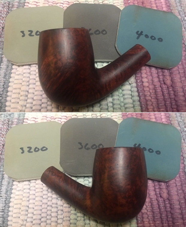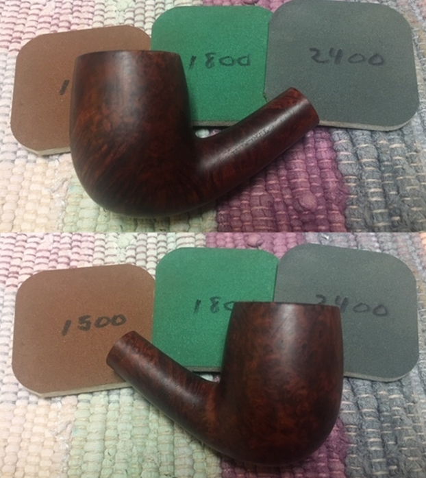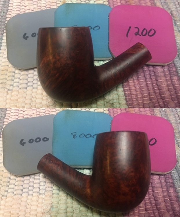 I polished the vulcanite with micromesh sanding pads – 1500-12000 grit pads. I wiped it down with Obsidian Oil after each sanding pad. I used Before & After Pipe Polish – both Fine and Extra Fine to further polish the stem.
