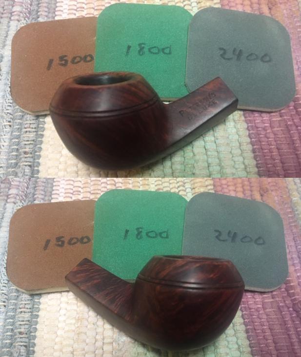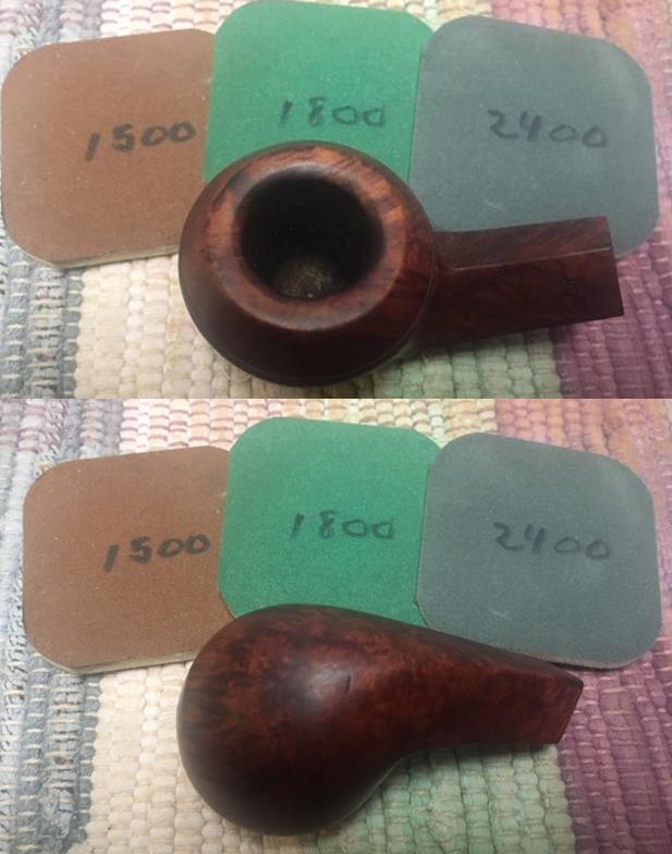 I set the bowl aside and turned my attention to the stem. I sanded the saddle junction between the stem and shank with 220 grit sandpaper to flatten out the rounded edges and rounded corners. Once I had it looking better I began the polishing with 400 grit wet dry sandpaper.