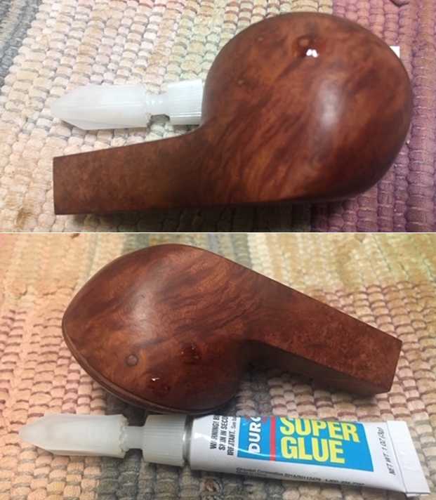 The stem was a good fit to the shank. It was oxidized, calcified and had debris stuck to the surface of the Redmanol. It also shows the light tooth marks on the stem and on the button surface.
