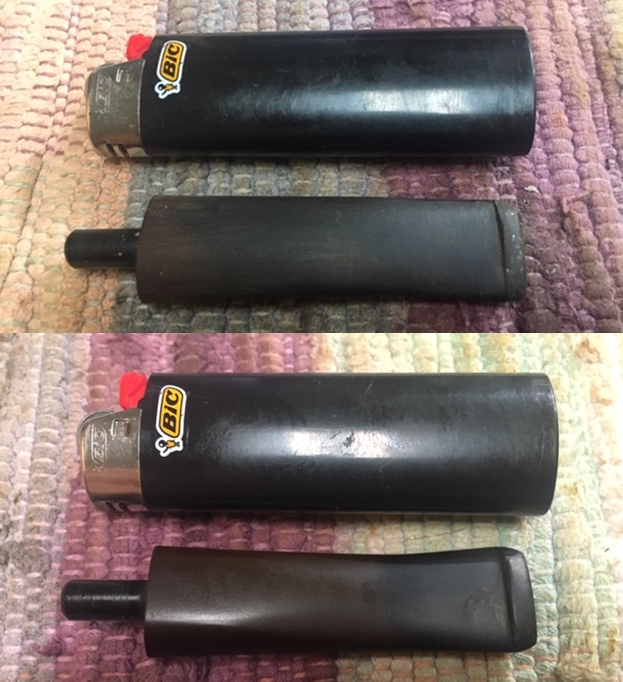 The next morning, Abha removed the stems that had been soaking in the deoxidizer solution overnight. She cleaned the stem and the stem airway under running warm water and scrubbed the raised oxidation from the stem surface using a Scotch Brite pad and the airway with thin shank brush. She further removed the oxidation by scrubbing the stem with 0000 grade steel wool and applied a little olive oil to rehydrate the stem.