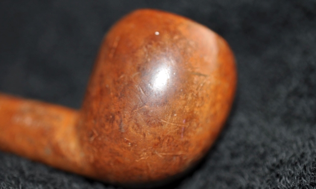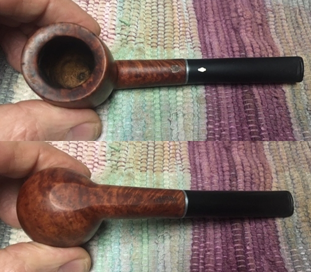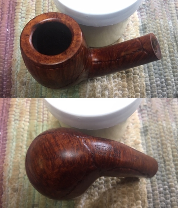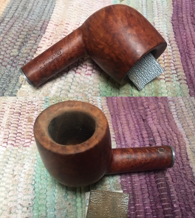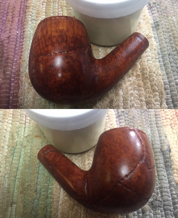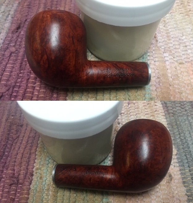 I knew that I was working on a pipe made after Feb. 7, 1933 when the patent was granted and prior to the early 1950s when the company was closed. Armed with that information and a clearer picture of the original pipe I turned to work on the pipe on my work table. Jeff had done a great job cleaning up the pipe as usual. He reamed the pipe with a PipNet reamer and cut back the cake back to the bare briar. He cleaned up the walls with a Savinelli Fitsall Pipe Knife. He scrubbed the interior of the bowl and shank with pipe cleaners, cotton swabs and alcohol to remove the tars and oils. He scrubbed the exterior of the pipe with Murphy’s Oil Soap and a tooth brush to remove the grime from the finish. He worked on the rim top lava and darkening with the soap and tooth brush. He scrubbed the inside of the stem with alcohol and pipe cleaners. He scrubbed the exterior with Soft Scrub and then soaked it in Before & After Deoxidizer. He washed it off with warm water to remove the Deoxidizer. The pipe looked far better. I took photos of the pipe when I received it before I started working on it.