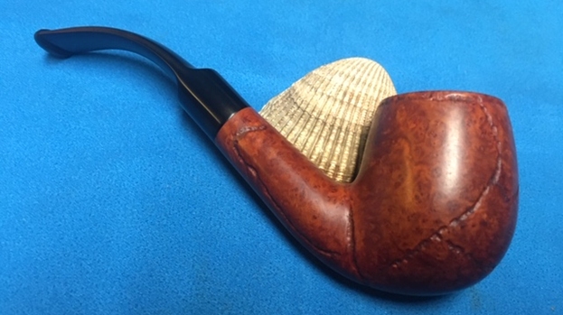 The varnish coat was crackling and scratched on the exterior of the bowl but there was great grain shining through. This would be a beautiful pipe once the varnish coat and grime was removed.