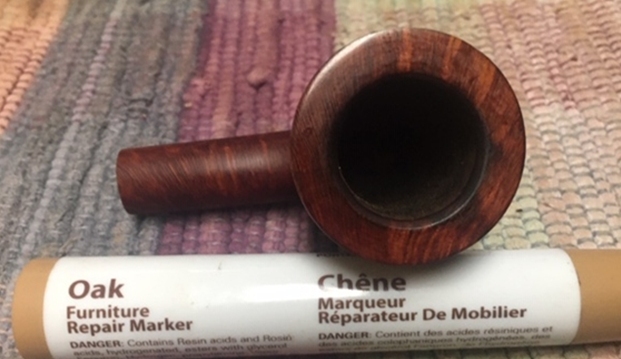It looks I am dealing with a pipe made especially for the American and Canadian market by Stanwell. Now it was my turn to work on the pipe now. I was really looking forward to what the pipe would look like once Jeff had worked his magic. What would the rim top look like? What would the dirty bowl look like? I had no idea. When I took it out of the box I was struck great job cleaning up the pipe Jeff had done. It was impressive! He had reamed the pipe with a Pipnet piper reamer and taken the cake back to bare briar. He cleaned up the remaining cake with a Savinelli Fitsall Pipe Knife. He scrubbed the interior of the bowl and shank with pipe cleaners, cotton swabs and alcohol to remove the tars and oils. He scrubbed the exterior of the pipe with Murphy’s Oil Soap and a tooth brush to remove the grime from the finish. He worked on the rim top lava and darkening with the soap and tooth brush. He scrubbed the inside of the stem with alcohol and pipe cleaners. He scrubbed the exterior with Soft Scrub and then soaked it in Before & After Deoxidizer. He washed the stem off with warm water to remove the Deoxidizer. The pipe looked far better. I took photos of the pipe when I received it before I started working on it.