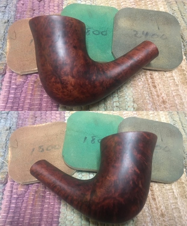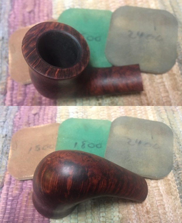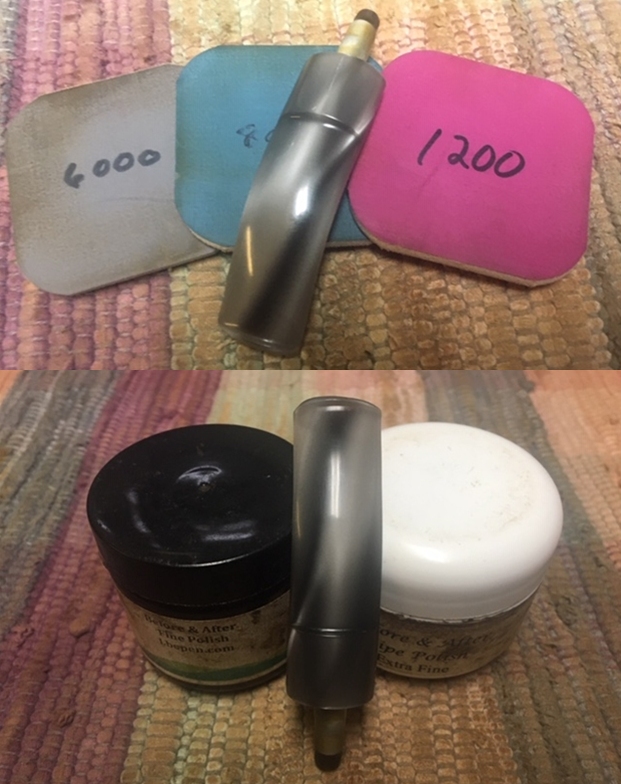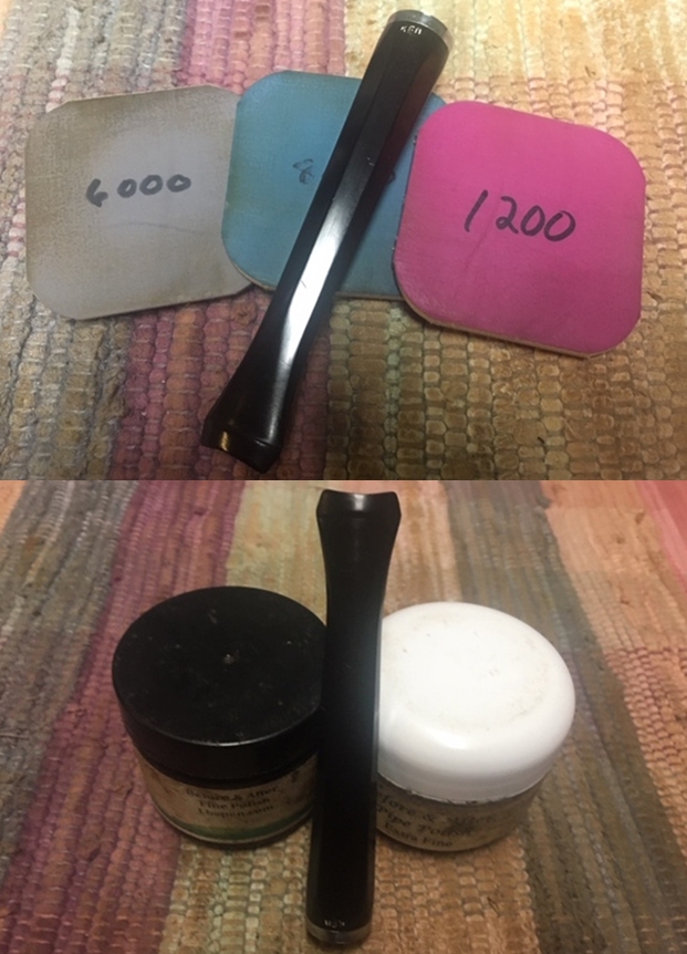 I polished the acrylic with micromesh sanding pads – 1500-12000 grit pads. I wiped it down with a damp cloth after each sanding pad. I used Before & After Pipe Polish – both Fine and Extra Fine to further polish the stem.