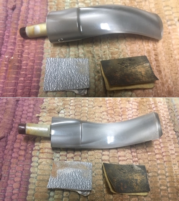 I set the bowl aside and worked over the tooth marks and blended them into the stem surface with 220 grit sandpaper. I started polishing the stem with 400 grit wet dry sandpaper. At this point it is starting to look much better.