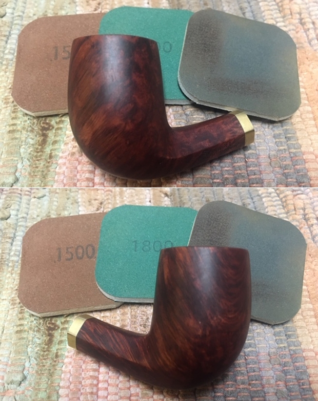 I polished the briar with micromesh – wet sanding with 1500-12000 grit micromesh sanding pads. I wiped the bowl down after each sanding pad with a damp cloth.