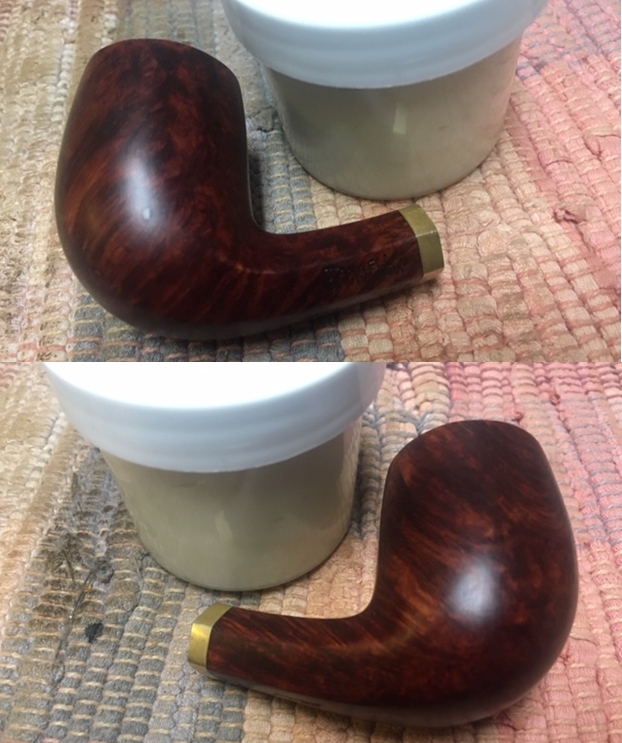 It looks like I am dealing with a pipe designed for Stanwell by Tom Eltang. Now it was my turn to work on the pipe. Jeff had done his usual thorough cleanup of the pipe. He had reamed the pipe with a Pipnet piper reamer and taken the cake back to bare briar. He cleaned up the remaining cake with a Savinelli Fitsall Pipe Knife. He scrubbed the interior of the bowl and shank with pipe cleaners, cotton swabs and alcohol to remove the tars and oils. He scrubbed the exterior of the pipe with Murphy’s Oil Soap and a tooth brush to remove the grime from the finish. He worked on the rim top lava and darkening with the soap and tooth brush. He scrubbed the inside of the stem with alcohol and pipe cleaners. He scrubbed the exterior with Soft Scrub and then soaked it in Before & After Deoxidizer. He washed the stem off with warm water to remove the Deoxidizer. The pipe looked far better. I took photos of the pipe when I received it before I started working on it.