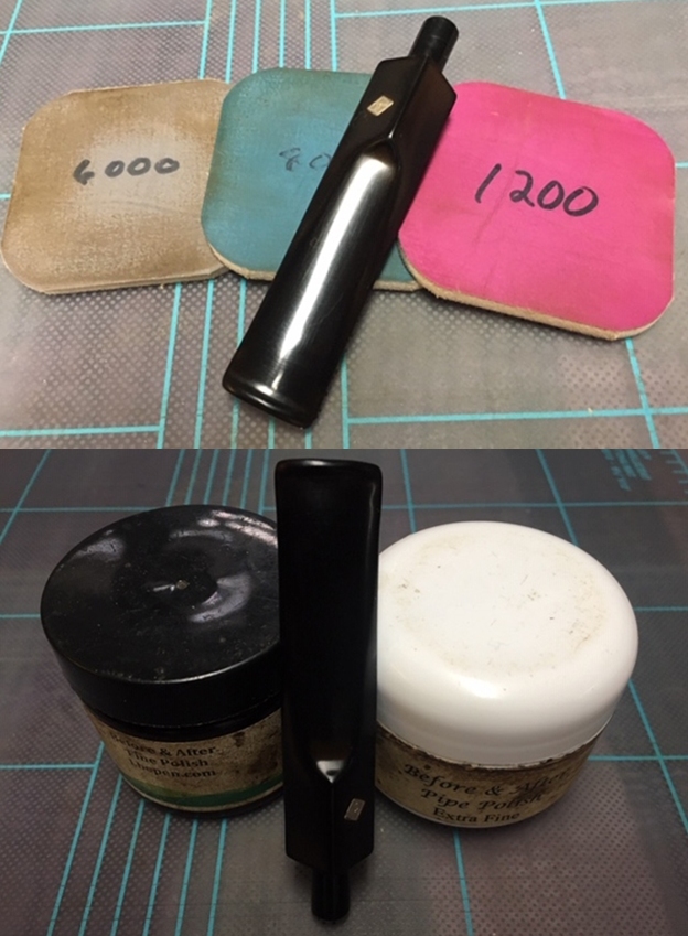 I polished the stem with micromesh sanding pads to remove the scratching in the acrylic stem. I wet sanded it with 1500-12000 grit pads and then gave it a buff with Before & After Pipe Stem polish – both Fine and Extra Fine. I buffed that off with a cotton pad. After each sanding pad and each polish I wiped the stem down with Obsidian Oil to preserve and protect the stem.