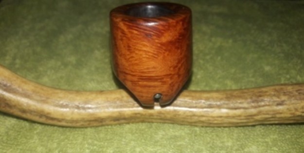 I roughened the smooth surface of the part of the tenon that would be glued in the stem with a needle file. Once it was sufficiently rough enough to provide some bite when glued into the stem I painted the end of the tenon with all-purpose white glue and inserted it in the stem. I ran a pipe cleaner through the airway to make sure it was clear and wiped off the excess glue around the threaded end of the tenon. I took a photo of the pipe with the proper tenon connection! Now it only needed to cure before I put it back together again.
