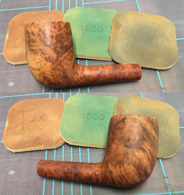 Now it was time to polish and impart a nice shine to the stummel. I wet sand the stummel with a 1500 and 2000 grit sand paper followed by wet sanding with 2400 to 12000 grit micromesh pads. Even though the tiny fills are clearly seen in the following pictures, in person, they merely appear as tiny dots and not easily discernible. I really liked that the mixed grains on the sides and Bird’s eye grain on the foot are now visibly resplendent in all their glory.