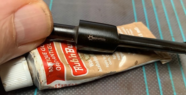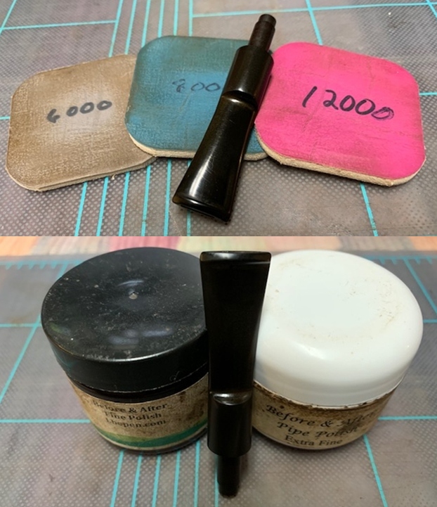To put the finishing touches, I mount a cotton cloth buffing wheel on to my hand held rotary tool and polished the stem with Blue Diamond compound. This compound helps to remove the minor scratch marks that remain from the sanding.