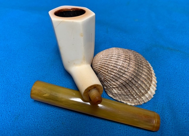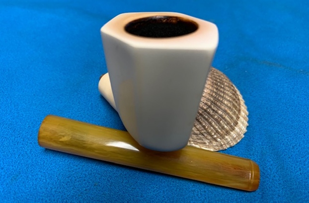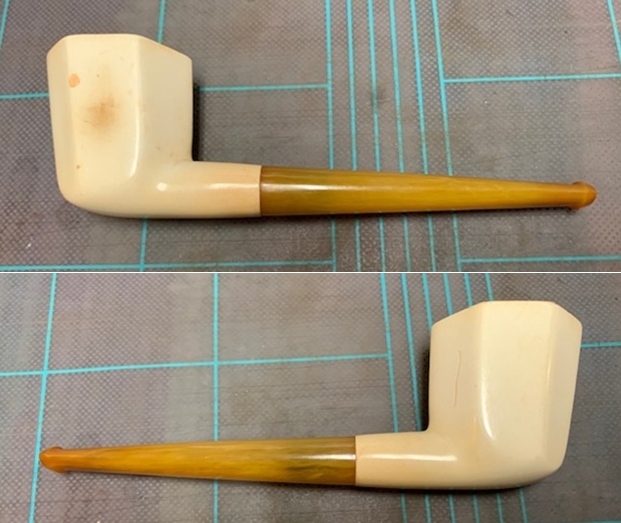 Castello still occasionally put rhinestones in the mouthpieces, just to maintain it’s value as a trademark. It’s not on many pieces. The black dot logo is used on Castello pipes with white Lucite stems.