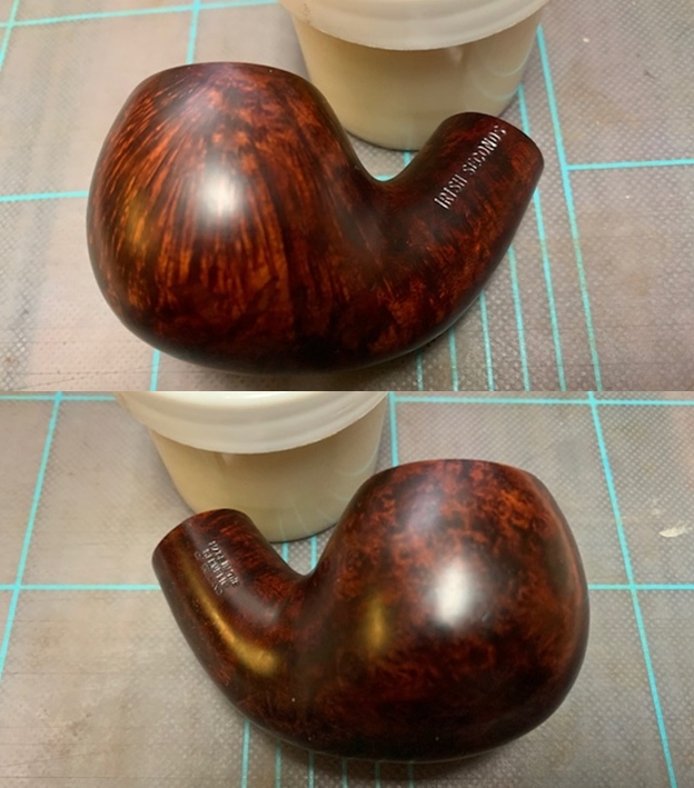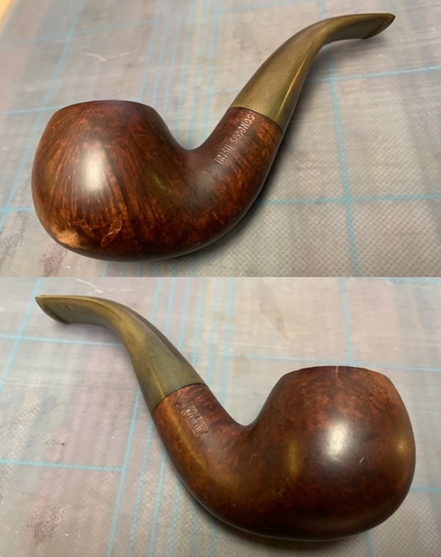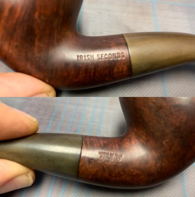 Irish Second pipes begin life alongside Peterson pipes in Dublin, but at some point a flaw appears making future life as one of those celebrated pipes impossible. At this point the pipes were roughly finished, given a standard vulcanite stem instead of a P-Lip, and stamped only with “Irish Second” and “Made in the Republic of Ireland”. These pipes were sold at a far more affordable rate than Peterson pipes, but are believed to no longer be sold new.
