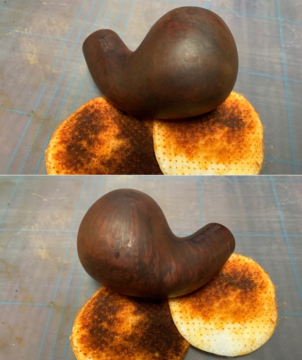 I wiped the bowl down with alcohol and cotton pads to gain some transparency on the stained bowl. I also wanted the grain to stand out.